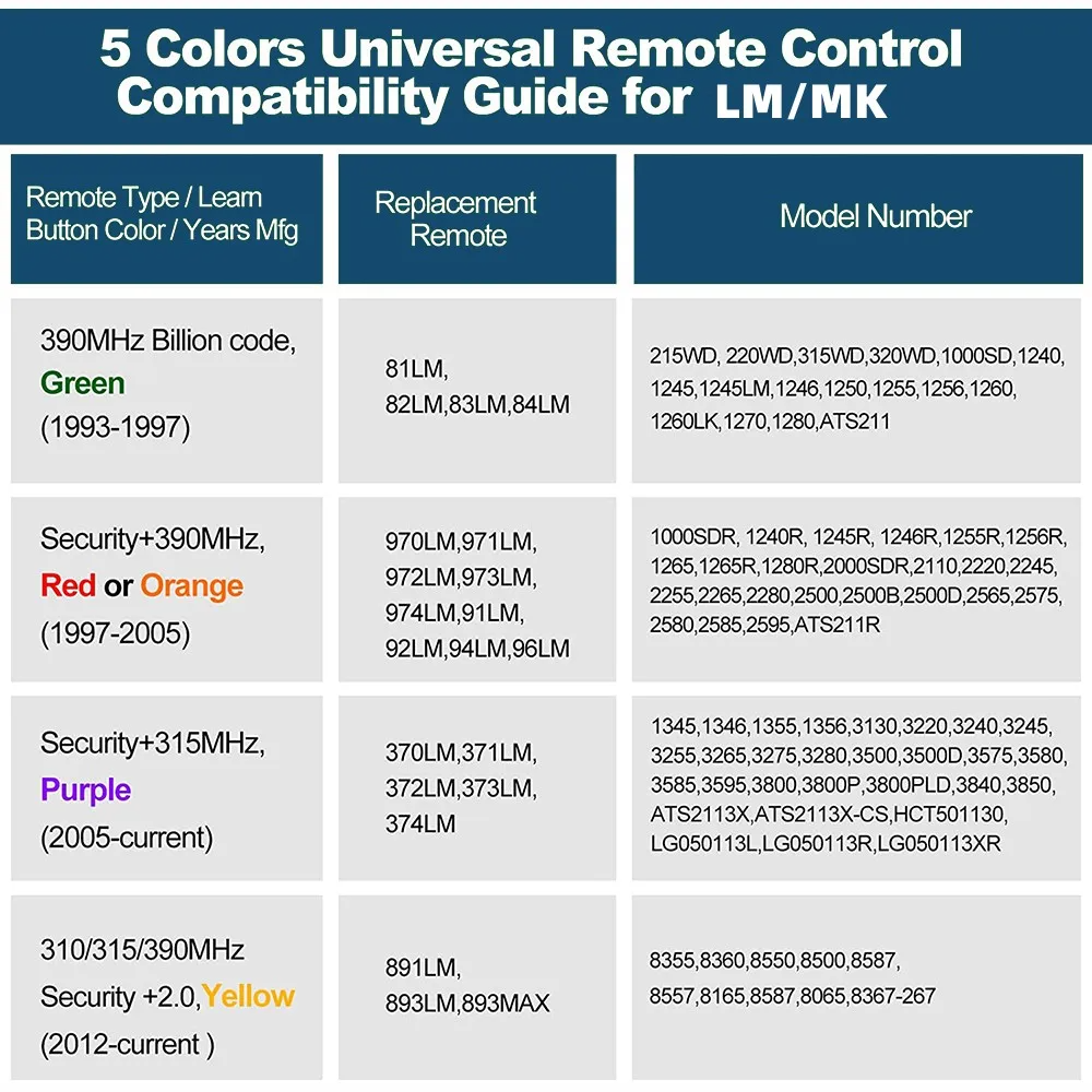 2 For Chamberlain LiftMaster Garage Door Opener Remote 893LM 953EV-P2 Learn