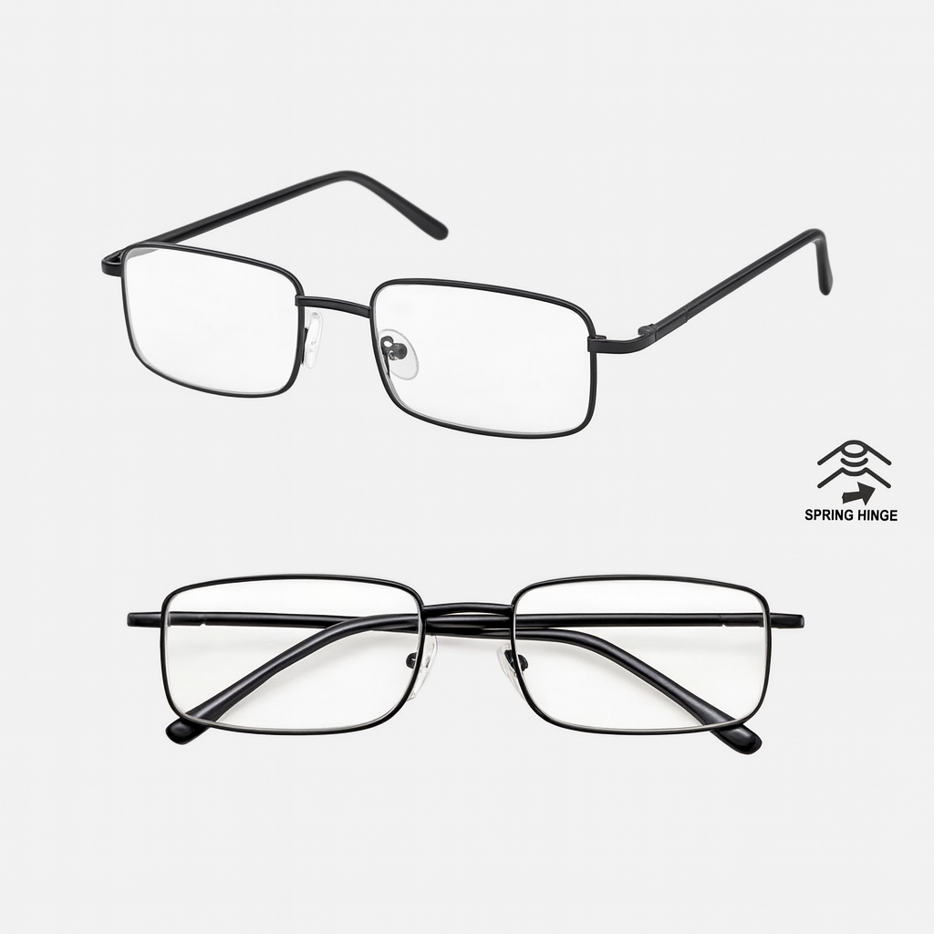 2 PACK Reading Glasses Mens Womens Metal Spring Hinge Square Frame Readers NEW