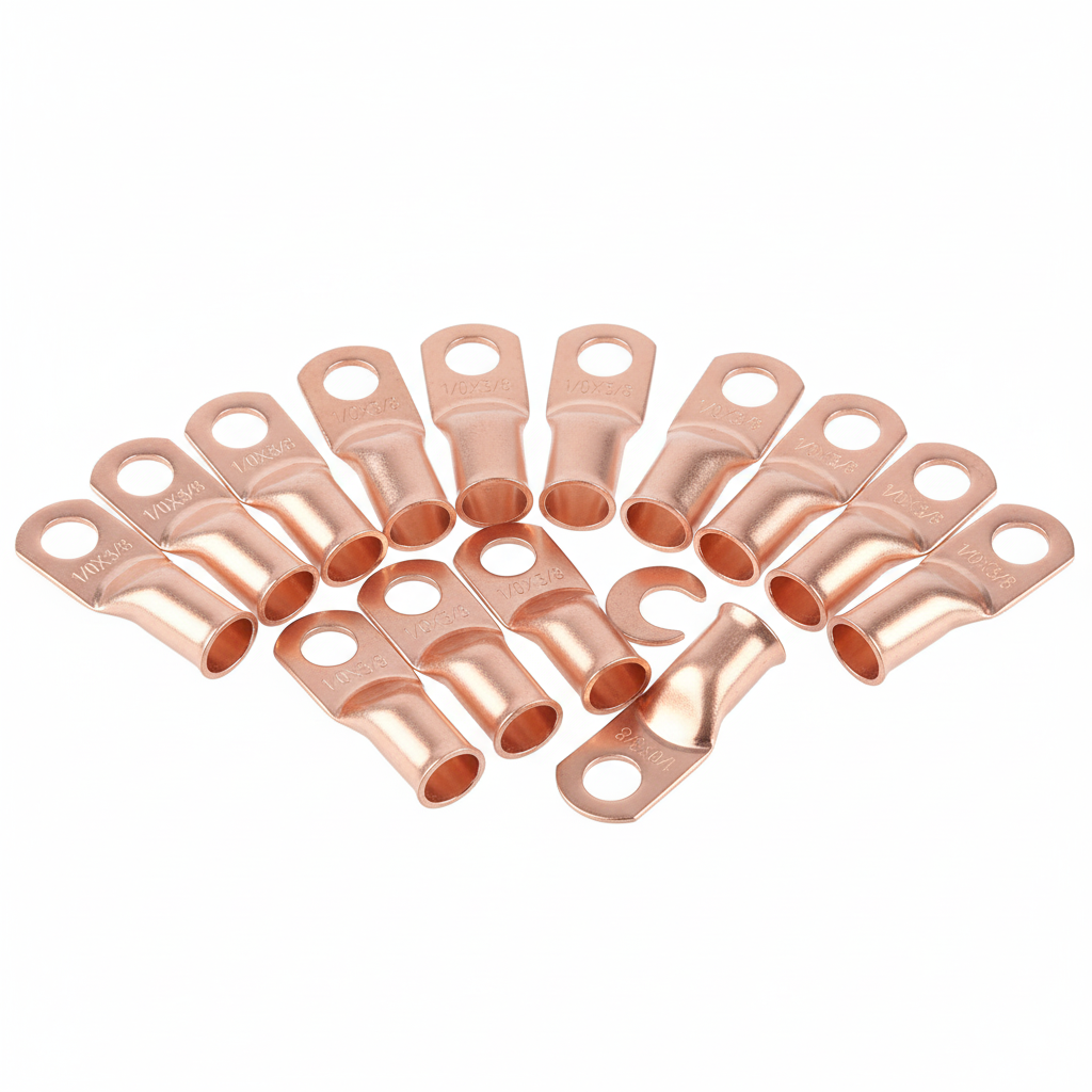 20PCS 1/0 AWG Gauge Copper Lugs W/ BLACK & RED Heat Shrink Ring Terminals Wire