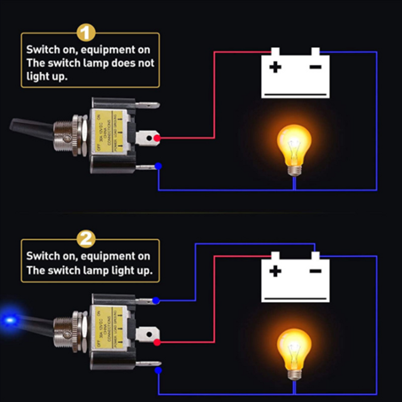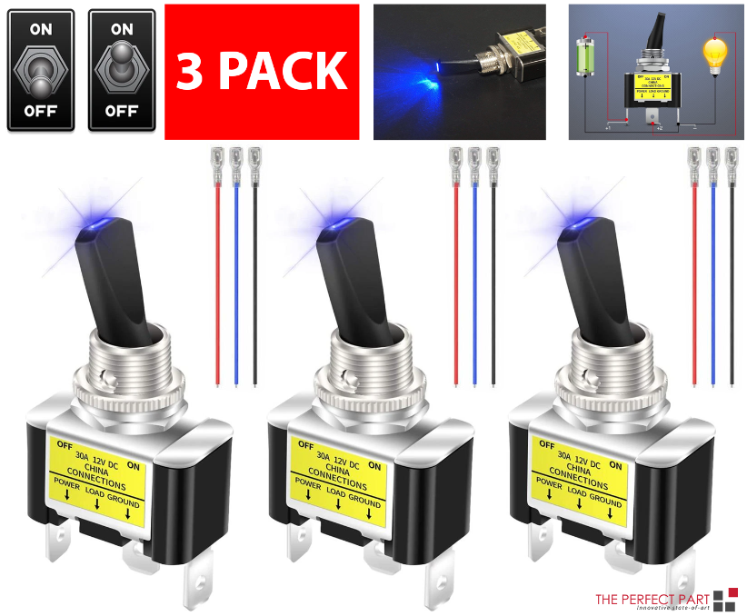 3Pcs 12V 30A Blue LED Light Toggle Rocker ON/OFF Switch 3Pin Marine Car Boat ATV