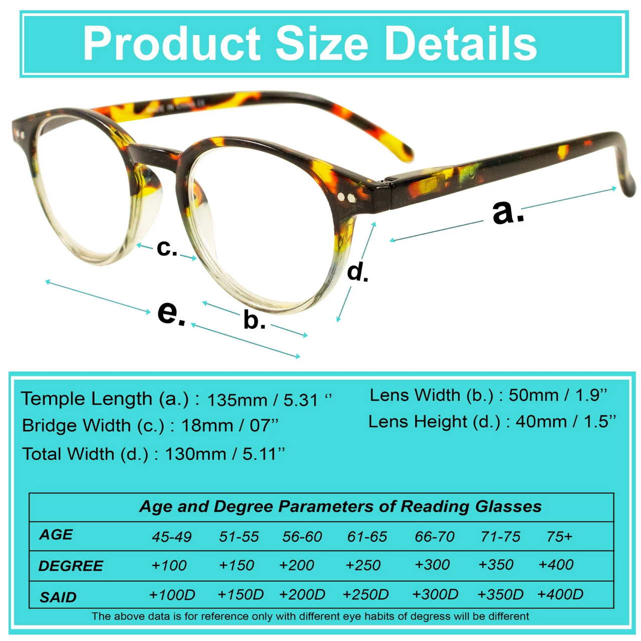 4 Pairs Mens Women Spring Hinge Round Horn Power Oval Reading Reader Glasses 1-4