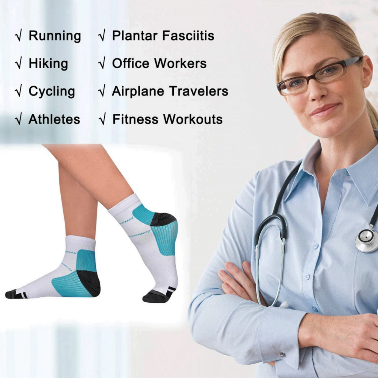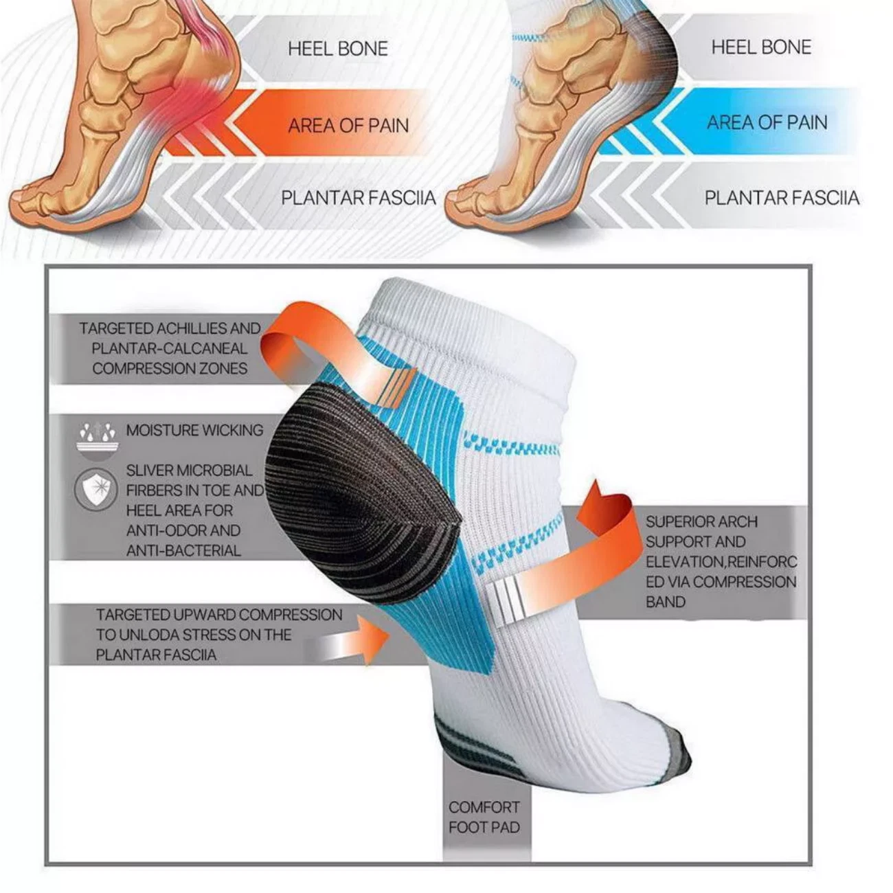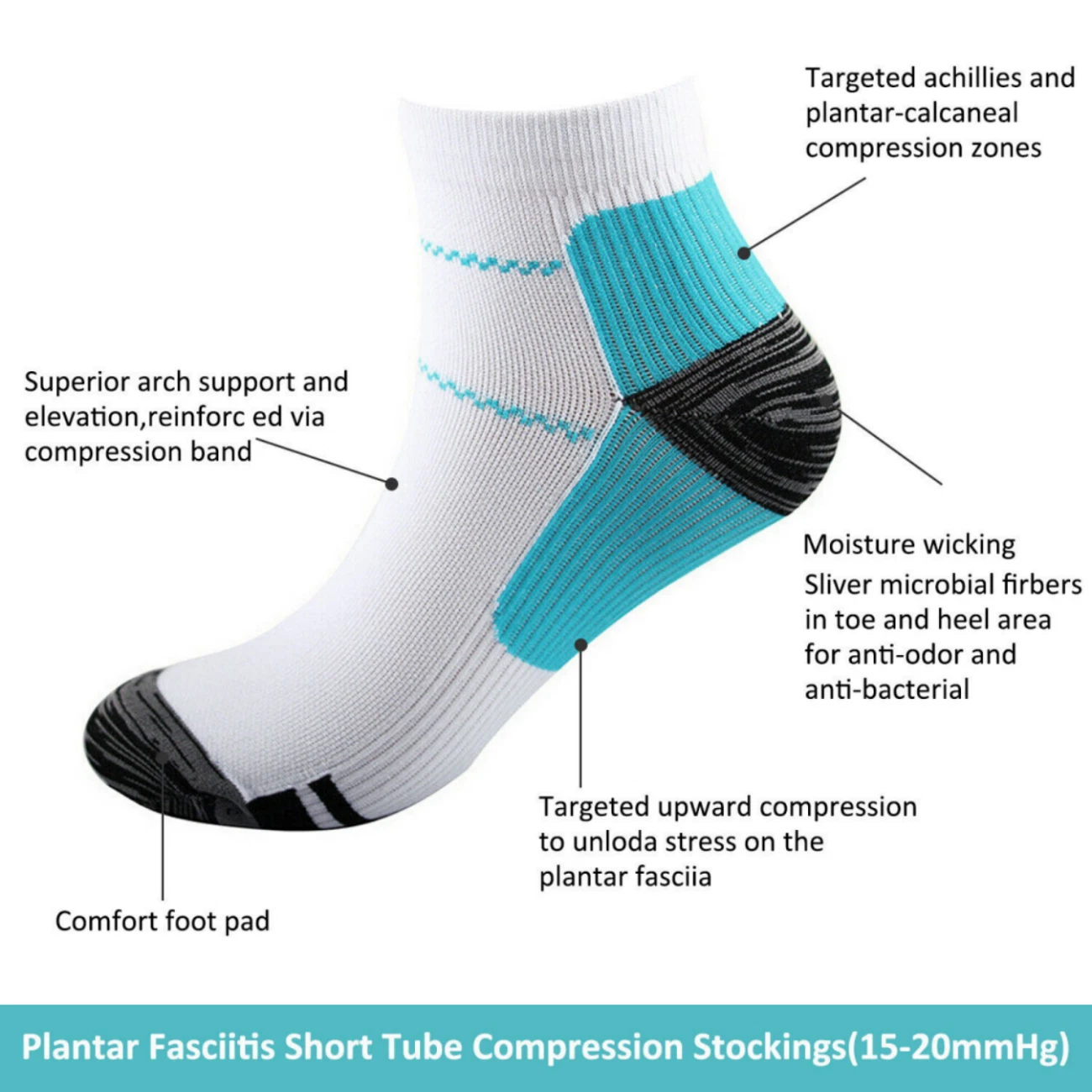 5 Pairs Compression Socks Plantar Fasciitis Arch Ankle Running Support Men Women