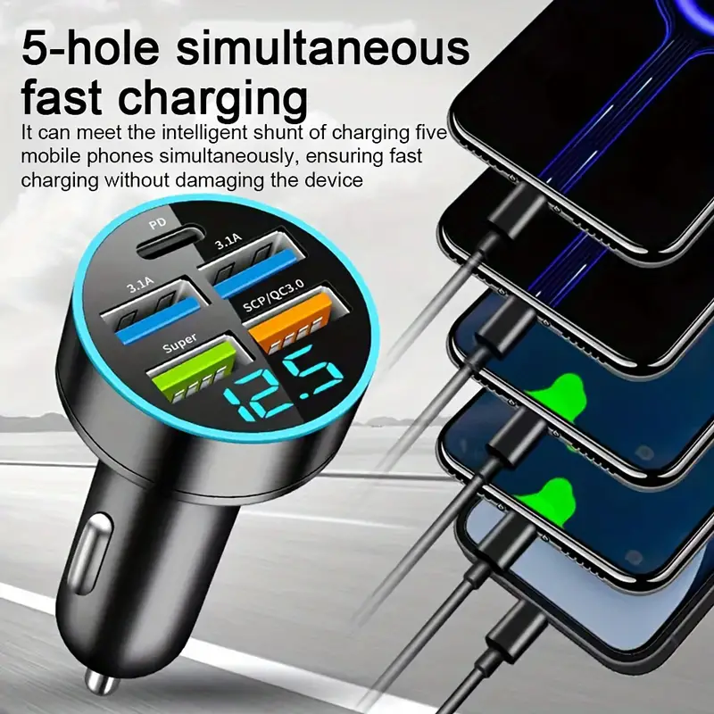 5 USB Port Super Fast Car Charger Adapter For iPhone Samsung Android Cell Phone