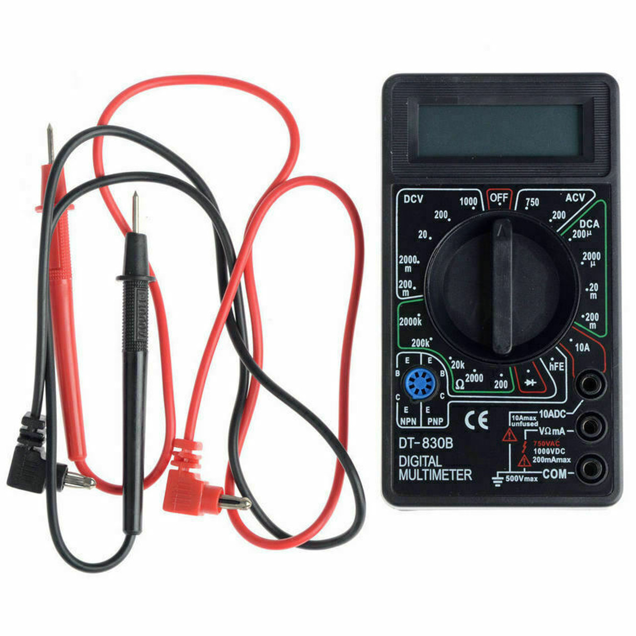 Handheld digital multimeter with 8 functions including hFE diode check and auditory continuity test AC/DC 1000V/10A 20Mohm Relative Measurement hFE Diode Check Continuity All range fused (resettable) with 1 Year Warranty DC Voltage: 200mV-500V AC Voltage: 200V-500V Direct Current: 200uA-10A Resistance: 20-20M Operating Temperature: -40 Degrees C to 1000 Degrees C Requires 9 Volt Battery (Not Included) The DT-830D Digital Multimeter with eight functions measures AC and DC voltage, DC current, resistance, and diode/transistor check. This is the perfect addition to the tool set of any electrician or handyman. Specification: |