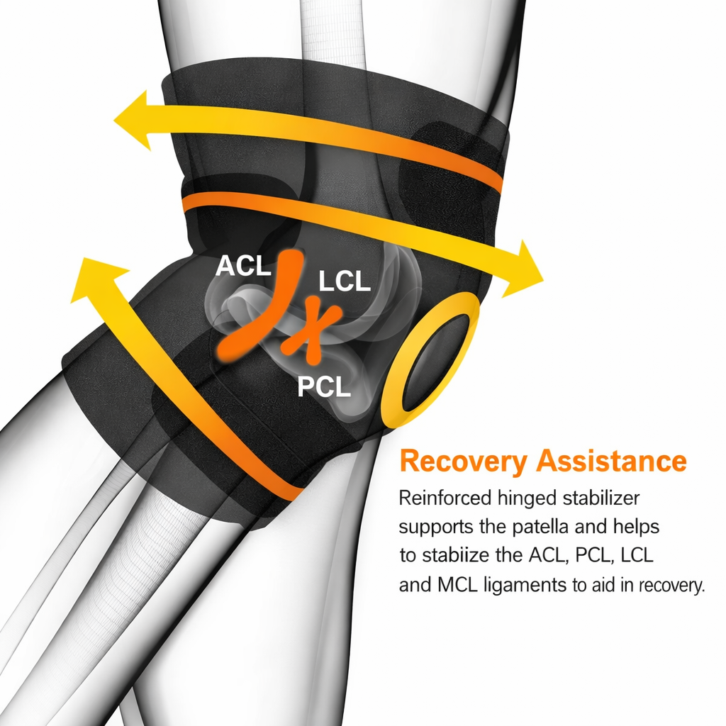 Knee Brace Compression Sleeve Hinged Joint Support Open Patella Stabilizer Wrap