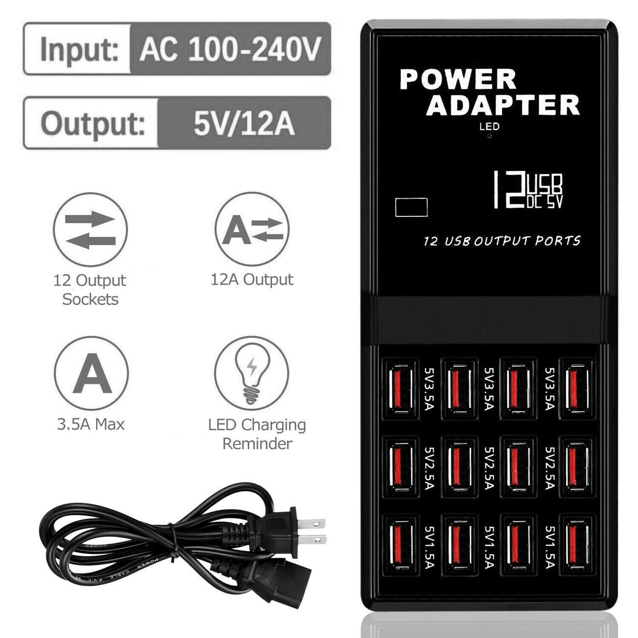 Multi 12 Port USB Charging Station Hub Desktop Wall Cell Phone Charger Organizer