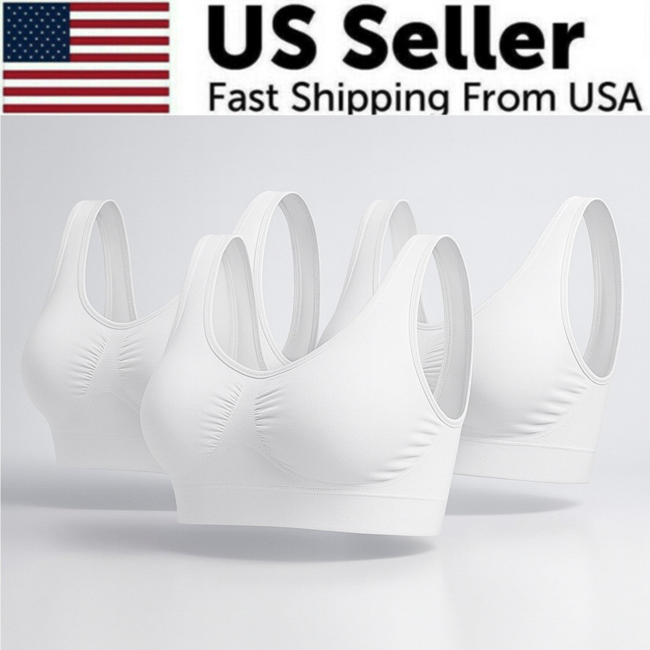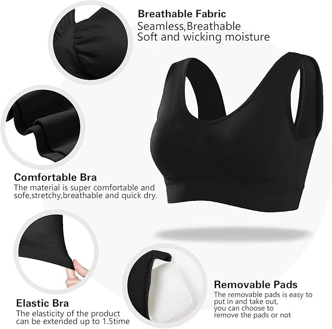 Sport Bras Seamless Wire-Free Light Support Tank Sports Yoga Sleep Bra 3 Pack US