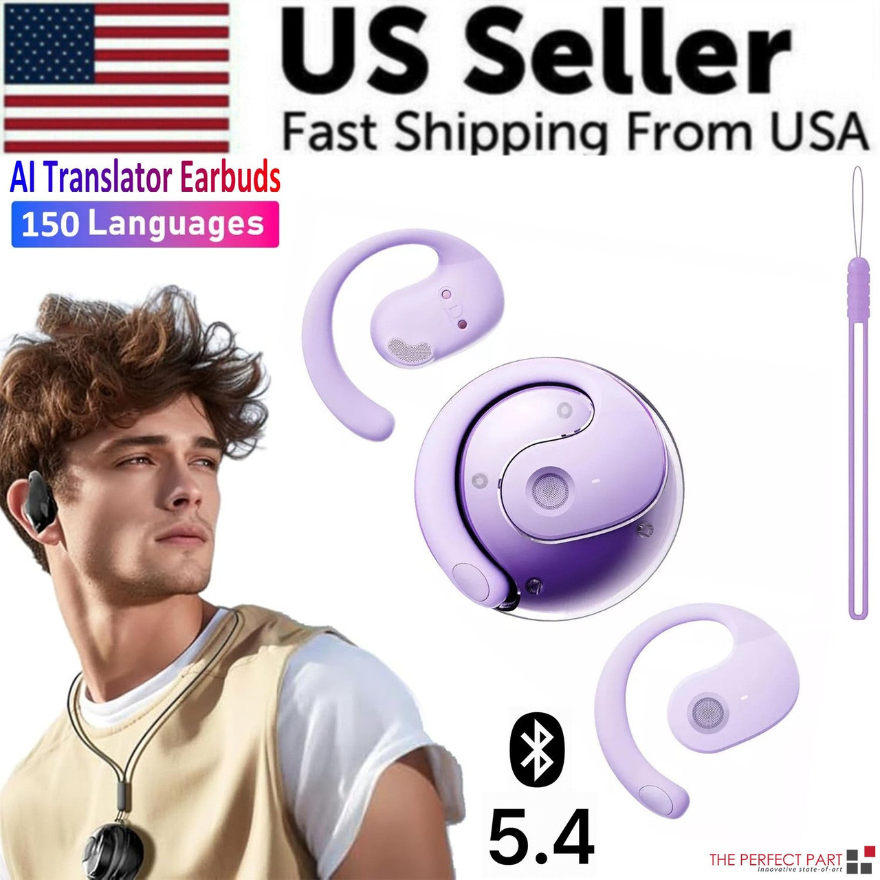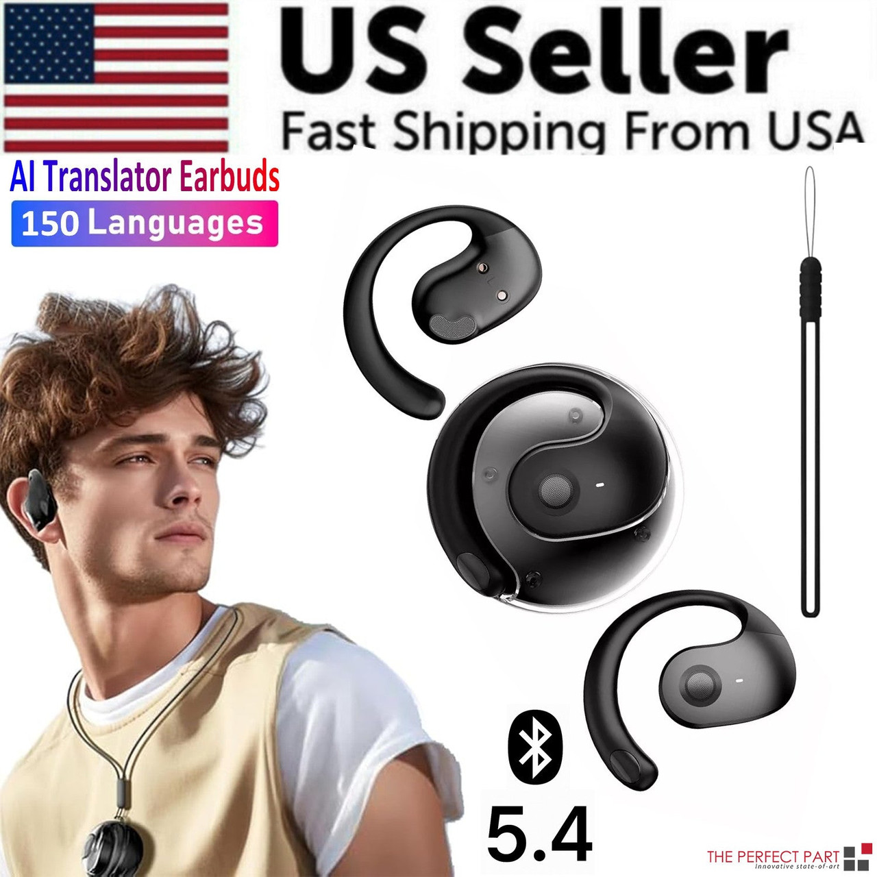 Translator Earbuds 150 Languages Real Time Translation Bluetooth 5.4 Headset US
